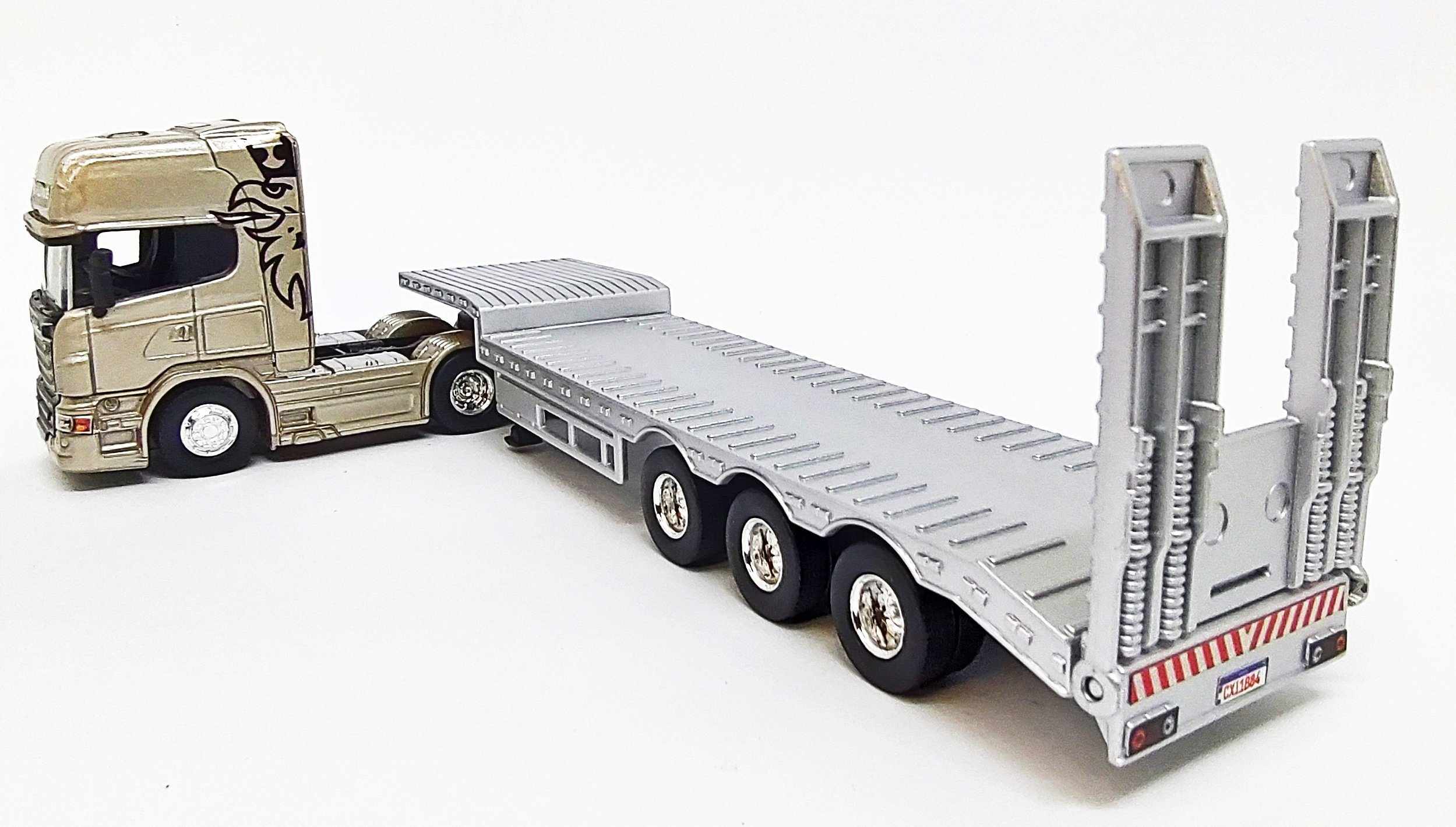 Miniatura Scania Highline Prata + Carreta Prancha 1/64